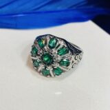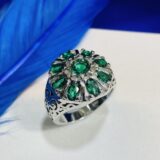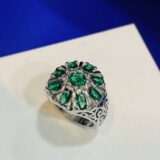 This stunning ring showcases a vibrant emerald green stone, expertly set in 92.5 sterling silver. Simple, sophisticated, and breathtakingly beautiful,
