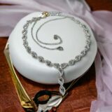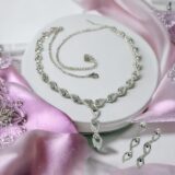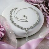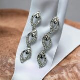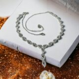 This stunning solitaire silver necklace set exudes elegance and timeless beauty. Featuring a brilliant solitaire gemstone as the centerpiece, the necklace is crafted from high-quality sterling silver, giving it a sleek and polished finish. The solitaire pendant is suspended on a delicate silver chain, offering a simple yet sophisticated design that radiates elegance.