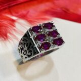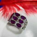 This striking men’s finger ring is crafted from 92.5% sterling silver, featuring a bold and captivating pink gemstone at its center. The pink stone is elegantly faceted to enhance its brilliance and color, creating a stunning contrast against the sleek silver band.