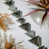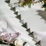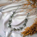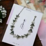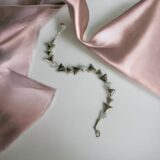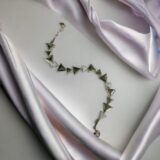 The sleek silver finish complements the intricate detailing of the rhinestone-studded triangle, creating a chic and contemporary look. The bracelet’s adjustable chain ensures a comfortable and secure fit for any wrist size, making it versatile enough for both everyday wear and special occasions. With its geometric design and luxurious rhinestone embellishments, this bracelet adds a touch of elegance and modernity to any outfit.